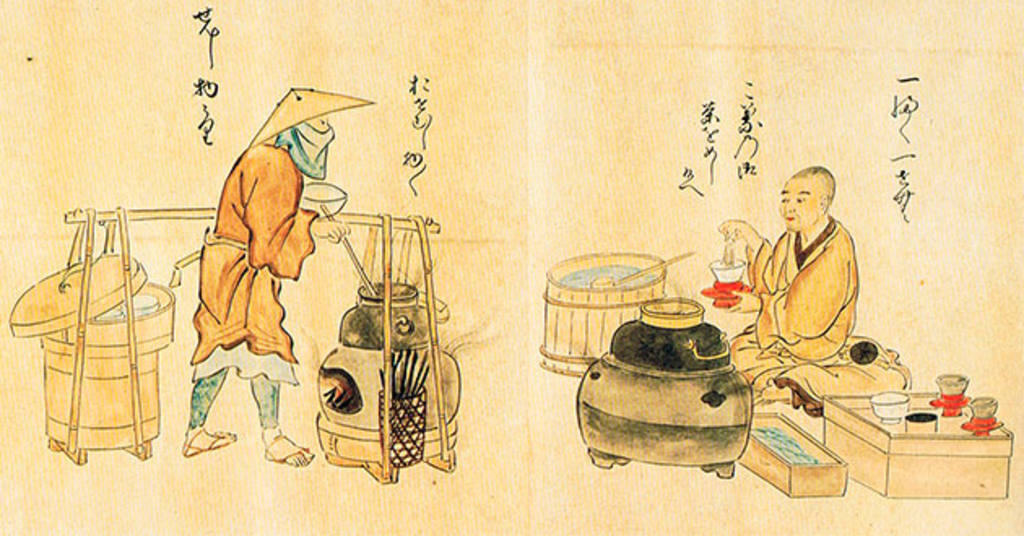 Al principi només la reialesa, el Shōgun (rang militar i títol històric al Japó concedit per l'emperador) i la noblesa podien gaudir d'aquesta delícia que es produïa en petites quantitats. Al segle XVI, mestres de te professionals, com Sen no Rikyu, van desenvolupar la cerimònia del te (chanoyu) en un ritual altament coreografiat que empra moltes formes artístiques, incloent ceràmica, pintura, laca, arts culinàries, disseny, cal·ligrafia, arranjament de flors, i fins i tot jardineria.