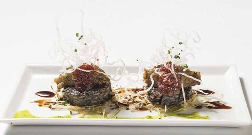 Samsara, por su parte, ha preparado lo que han bautizado como BotInedit DeLuxe (imagen inferior), que se trata de 'timbals' de morcilla de arroz con caviar, una combinación tan original como especial.