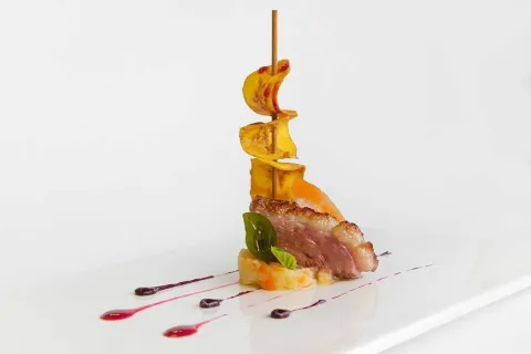 Pero no solo de bacalao se alimenta la ruta. Hotel SB Corona de Tortosa propone delicia de mejilla de cerdo a baja temperatura con higo caramelizado y foie.