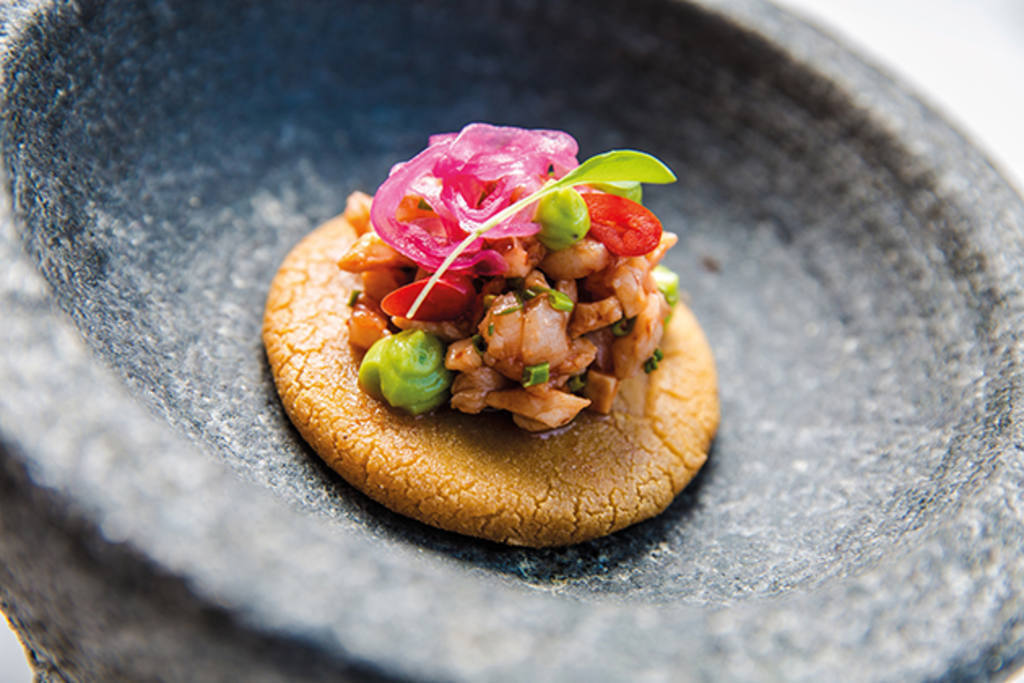 En esta ruta caben también las propuestas más innovadoras como la causa peruana con pollo desmigado en salsa picante de cacahuetes de Vandal (sobre estas líneas) o la arepa de pollo, chorizo palmero y mojo picón dulce de La Vieja (bajo estas líneas).