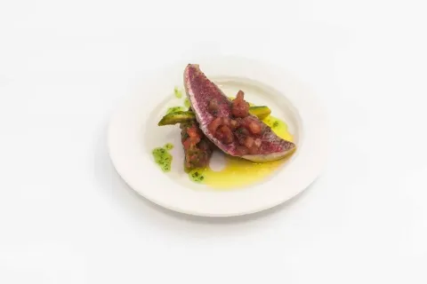 Entre las propuestas destaca “Muérdeme”, de Mar de Tierras, una tostada de pan en lecho con escalibada, bacalao gratinado con bechamel, anchoa y aceituna negra (sobre estas líneas). Por otro lado, Estival Eldorado Resort nos sorprende con el “Filete de salmonete confitado con sabores mediterráneos”, a base de salmonete, calabacín, calabaza, espárrago, tomate, pimiento rojo, pimiento verde, pimienta negra, albahaca, sal fina y aceite de oliva.