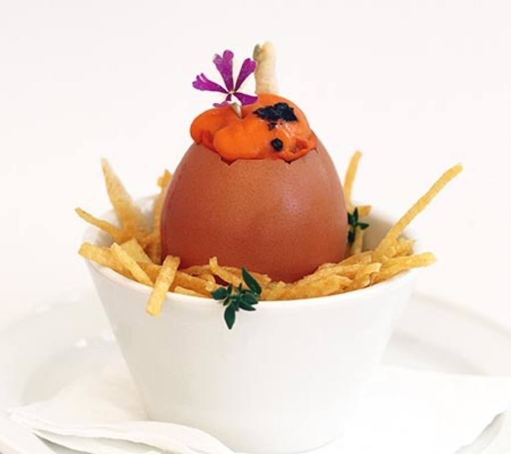 Y, junto a ellas, otras propuestas de lo más originales, como el huevo… de boquerones de El Pimpi (bajo estas líneas) o la sorpresa de morcilla sobre volcán de arroz de Soho.