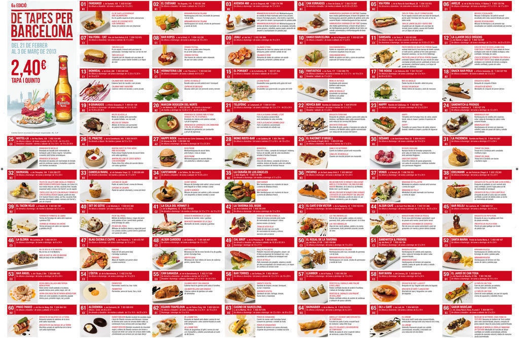 Aquesta iniciativa s'emmarca dins de la 6ª edició de la ruta "De tapes per Barcelona", que va començar dijous 21 i finalitza el diumenge 3 de març, i en el que participen 66 locals de la ciutat. Cada local ha creat una tapa exclusiva per a l'ocasió. N'hi ha per a tots els gustos: des de les més tradicionals fins a les més avantguardistes. Però totes acompanyades amb la cervesa d'Estrella Damm i a un preu únic de 2,40 €.
