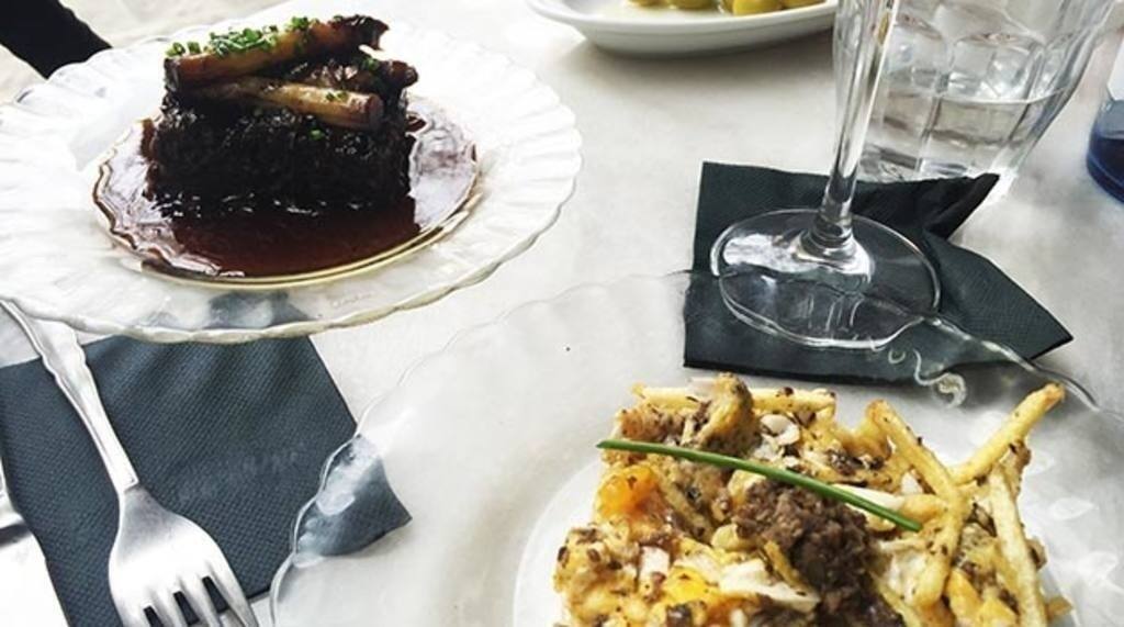 Assessorades per ell vam triar la cua de bou cuinat a baixa temperatura i acompanyada d'espàrrecs blancs; i els ous estrellats amb patates palla i tòfona. Tots dos plats són molt potents de sabor, i quan el nen els tasta, per a la nostra sorpresa, repeteix encantat. La nostra recomanació passa per començar per l'ou, perquè la textura cruixent de la patata té una vida curta. Diu Aragón que Vermut Pérez és un lloc on els clients deixen passar tranquil·lament les hores, i el creiem.