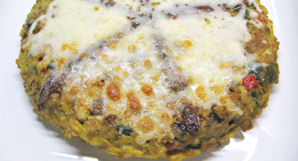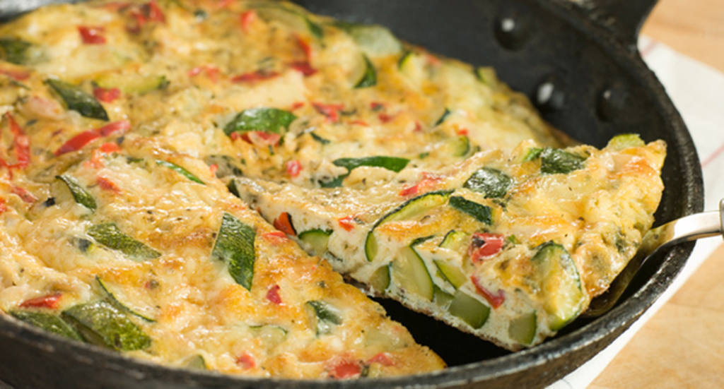 La base d'aquesta recepta és una truita de verdures, feta amb el que tinguem a la nevera, per exemple ceba, pebrot verd i vermell, api, albergínia, carbassó i all, tot tallat a daus regulars i ben saltat en una paella, per aquest ordre, perquè els primers productes necessiten més cocció. Batem els ous i quallem la truita al nostre gust.