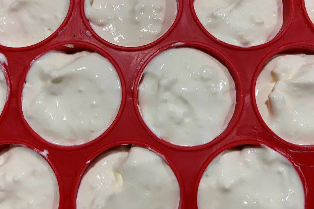 - Vertemos la mousse en moldes semiesféricos y congelamos durante 12 horas.