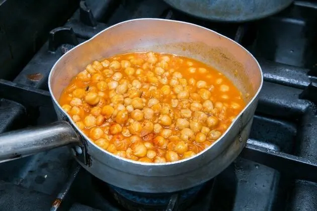 - Mientras, preparamos los garbanzos, que deberán haber estado en remojo, como mínimo, 12 horas. Los ponemos a cocer el mismo tiempo que las carnes, con un caldo casero, ternera y un hueso de pollo.