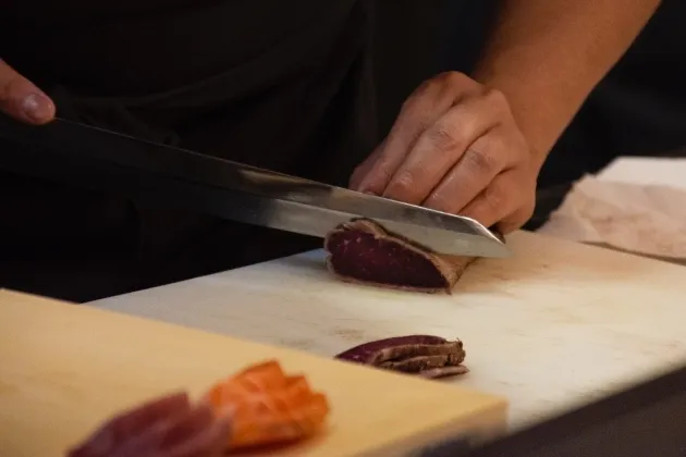 Diego Laso, chef de Momiji Atelier en Valencia, nos prepara en exclusiva uno de los platos estrella de su restaurante. Se trata de un tataki de solomillo de vaca, daikon encurtido, napicol y salsa de jengibre. Una receta japonesa que destaca por la potente y deliciosa mezcla de sabores. Sin duda, se trata de un plato diferente con el que sorprenderás a tus invitados. Sigue leyendo y ponte manos a la obra.