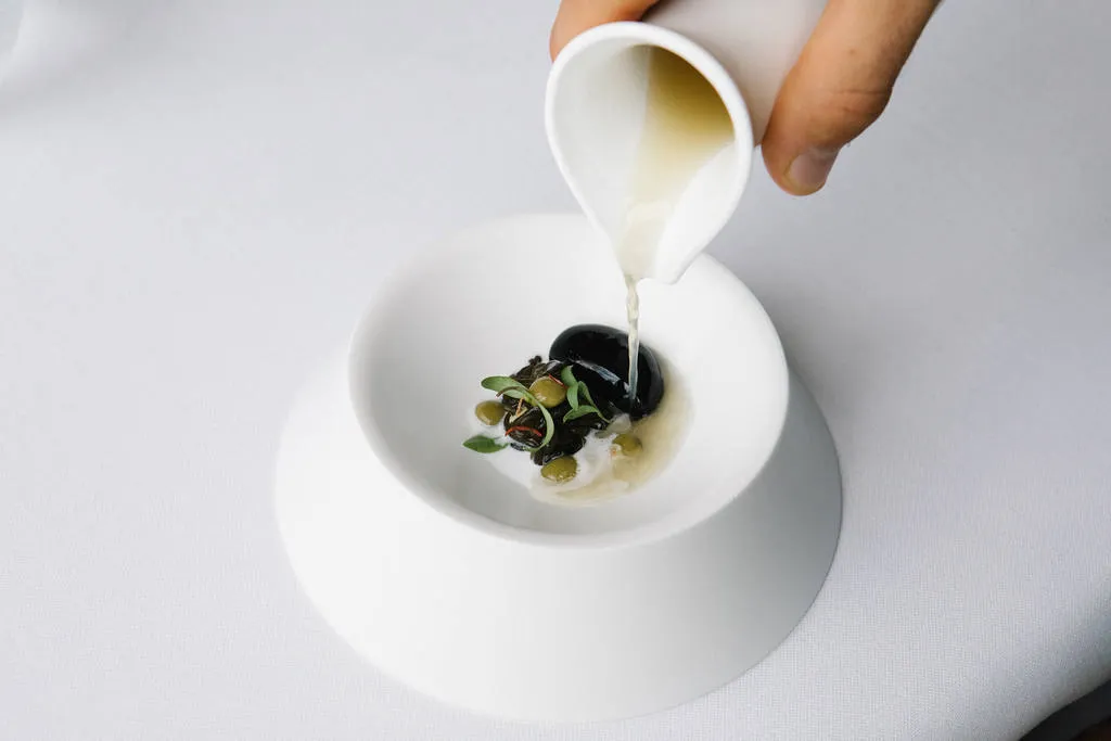De este mar viajamos a todos los mares del mundo, a través de técnicas y sabores. En el primer pase, también están la Empanadilla Marina, con lechuga de mar, tartare de sepia con limón y una emulsión de salsa de sepia, y el Jurel marinado, con wasabi, hinojo y aceite de jurel brasa.