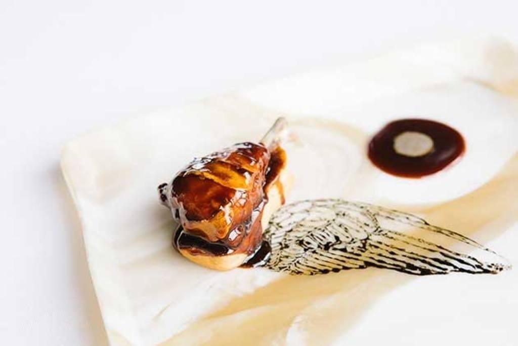 Alcachofa marina y tuétano; el extraordinario Piquillo y chuleta, presentado como un largo carpaccio de vaca madurada, en el que la glasa funde con una salsa de piquillos. Paco cuenta que quiere evocar Tolosa, al otro lado de los Pirineos, en el País Vasco.