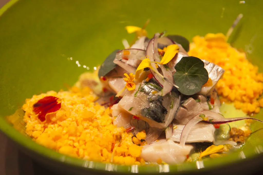Destaca su viera a la brasa con puré de tupinambo y patata violeta, todo un placer para los sentidos que han bautizado como Anticucho. De influencia mejicana, el taco de cochinita cuenta con una particularidad que lo hace único: el cochinillo lo cocinan como en Segovia, confitado al vacío toda la noche para darle luego un toque crujiente. No podía faltar el cebiche, aunque aquí se distingue porque lo elaboran con pescado fresco del Mediterráneo.