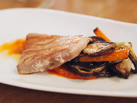 Hemos probado propuestas elaboradas, como la bomba pizza, en la que se notaba bien que el tomate es casero; un trempó con garbanzos acompañado de alimentos de temporada como los albaricoques y las alcaparras. Nos encantó el delicioso arroz meloso de cerezas, así como el atún con verduras asadas y salsa romesco, que rendía un homenaje a los calçots. En cuanto a los postres, son sencillos pero igualmente caseros y buenos, como la mousse de chocolate negro y fruta de la pasión.