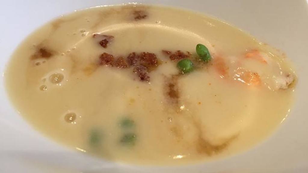 Ya sin caviar, está buena la vichyssoise de pollo y cigala, con una gelatina de sus cáscaras y el contraste de unos dados de pan frito. Mientras que las alcachofas con sabayón de ibérico pierden bastante por un exceso de huevo y de sal.