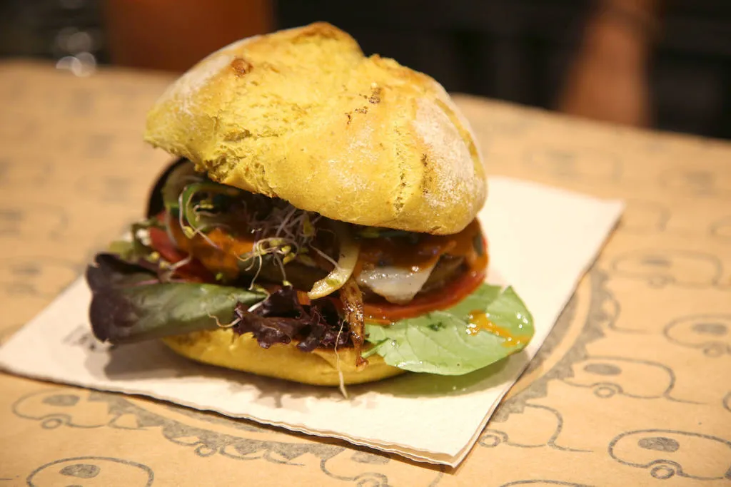 El día que visitamos Van Van Var la cocina la ocupaban Santi y Montse, que llevan más de tres años con su proyecto Happy Foods, un food truck que ofrece cocina cien por cien ecológica y slow. Preocupados desde hace muchos años por el bienestar y con un extremado respeto por la alimentación saludable, nos explican que quieren dignificar la hamburguesa y quitarle la etiqueta de comida basura.