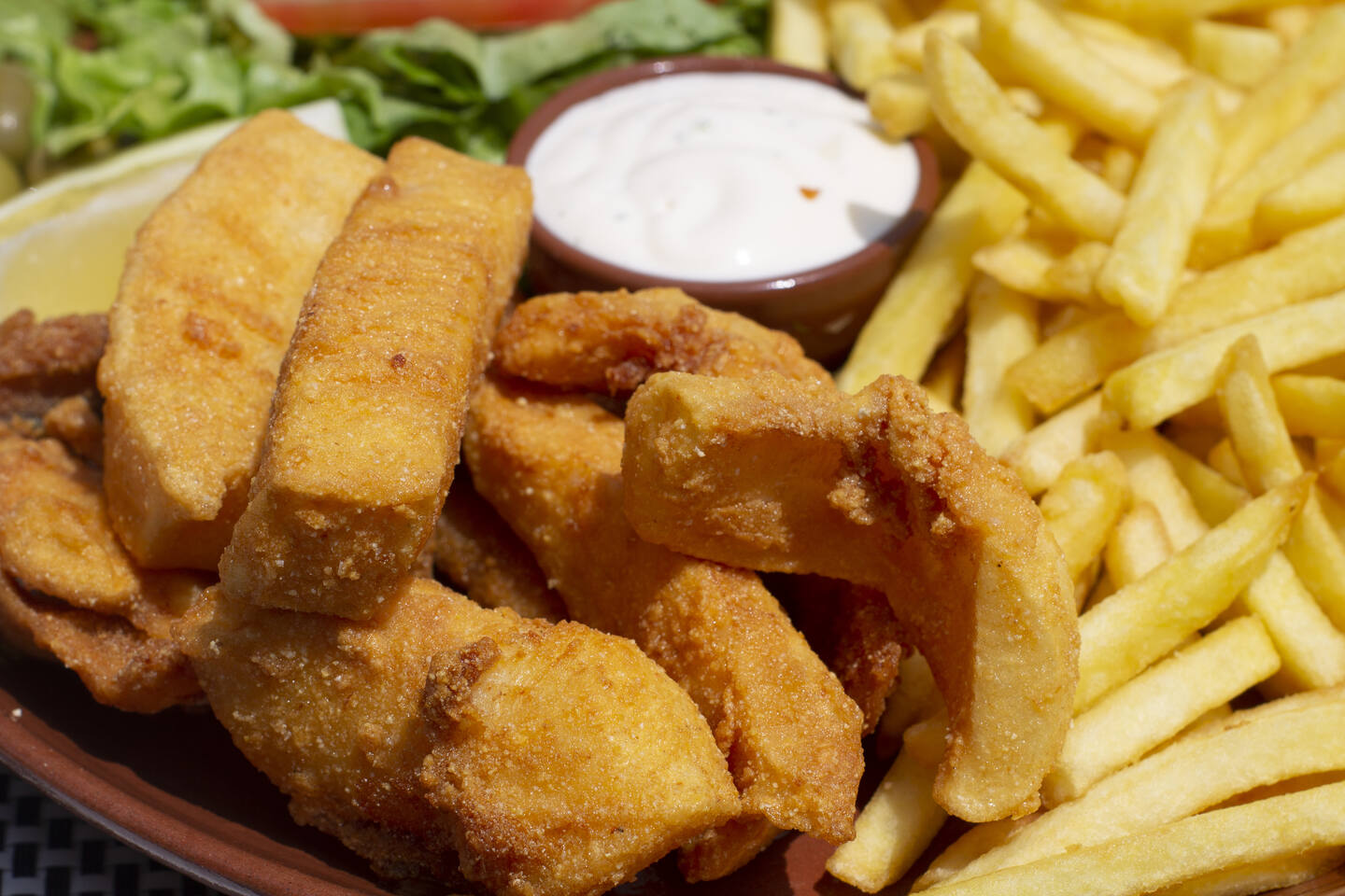 Escurrimos las tiras, las colocamos sobre papel absorbente y las servimos con unos gajos de limón.