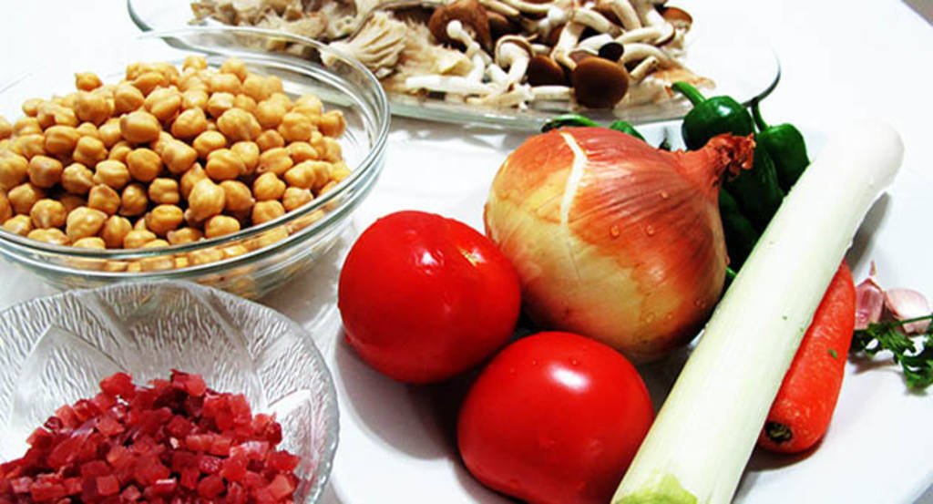 - Después de limpiar las setas colocamos los garbanzos en una cazuela y añadimos el sofrito, las setas y los tacos de jamón. Lo dejamos a fuego lento hasta que los garbanzos se vuelvan tiernos. Echamos sal y pimienta al gusto.