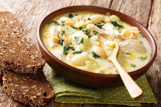 - Añadimos la pechuga cortada en trozos y cubrimos con el caldo. Salpimentamos el caldo y cuando hierva, añadimos los gnocchi y cocinamos unos 4 minutos.