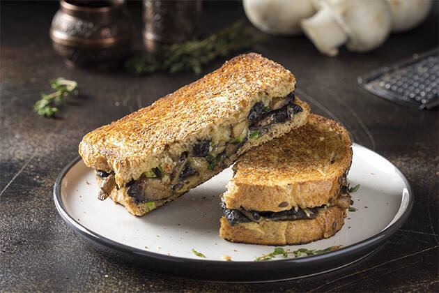 Para el sándwich de setas con queso azul: