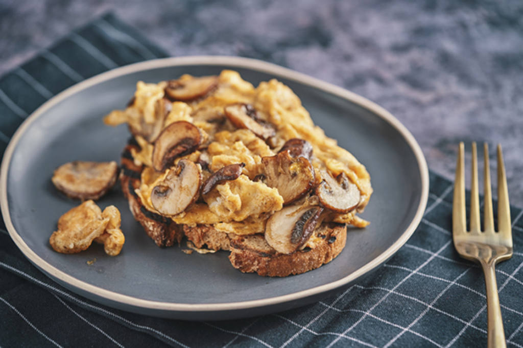 Los huevos revueltos admiten todo tipo de acompañamientos, ya lo hemos visto; si bien los británicos y norteamericanos parece que los prefieren solos, aquí es muy habitual prepararlos con espárragos, tomate, bacalao, jamón y todo tipo de setas o verduras y también marisco, como gambas y langostinos.