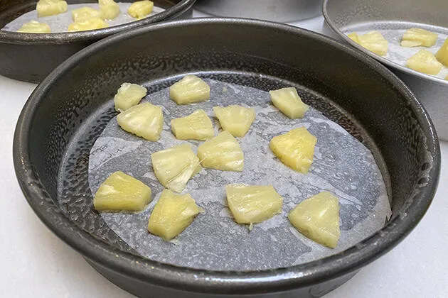 - Incorporar los frutos secos: harina, sal, levadura, coco y el almíbar.